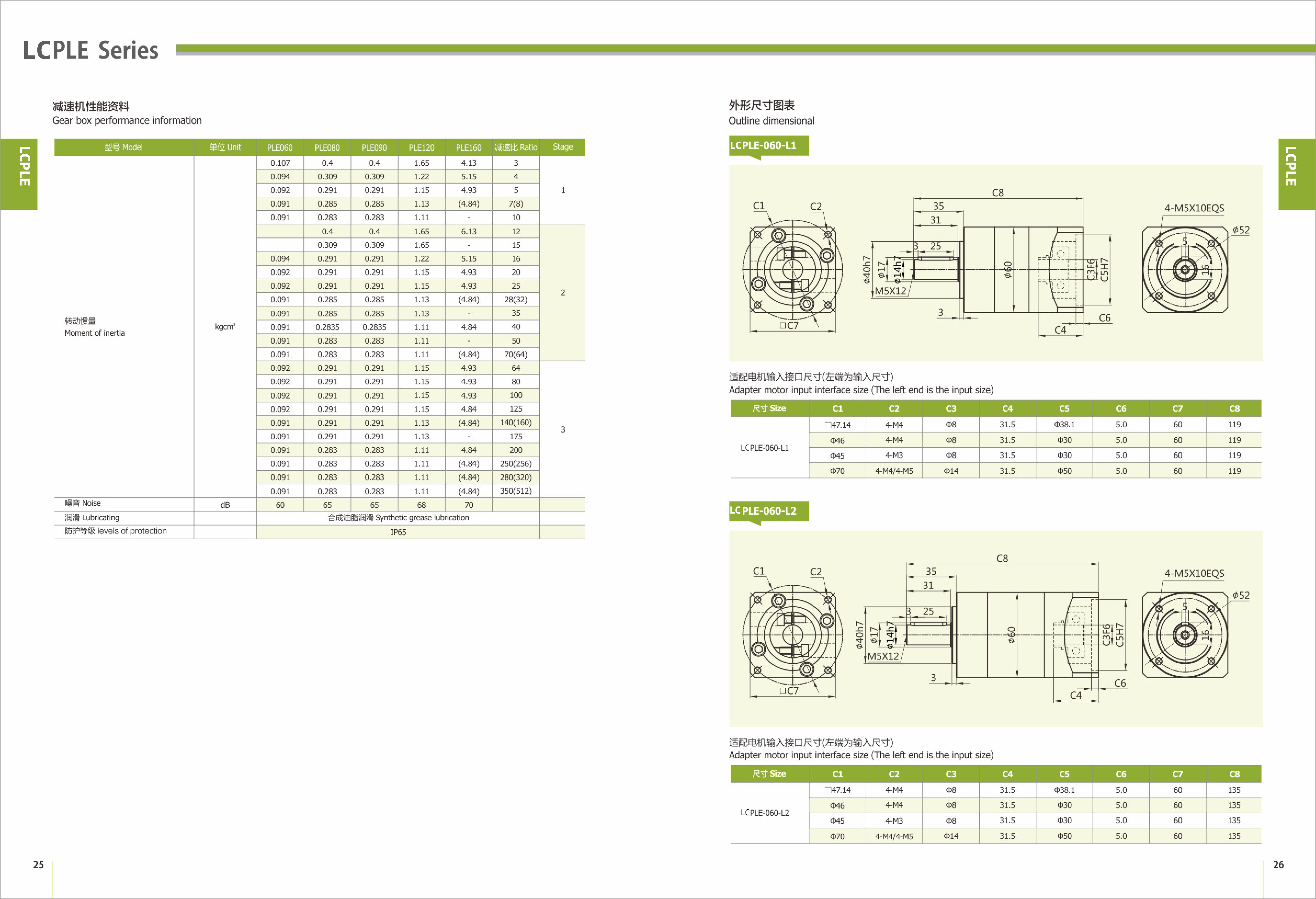 高扭矩:LCPLE系列可以提供高扭矩和低慣量的輸出特性,滿(mǎn)足各種高扭矩和高速度工況的要求。