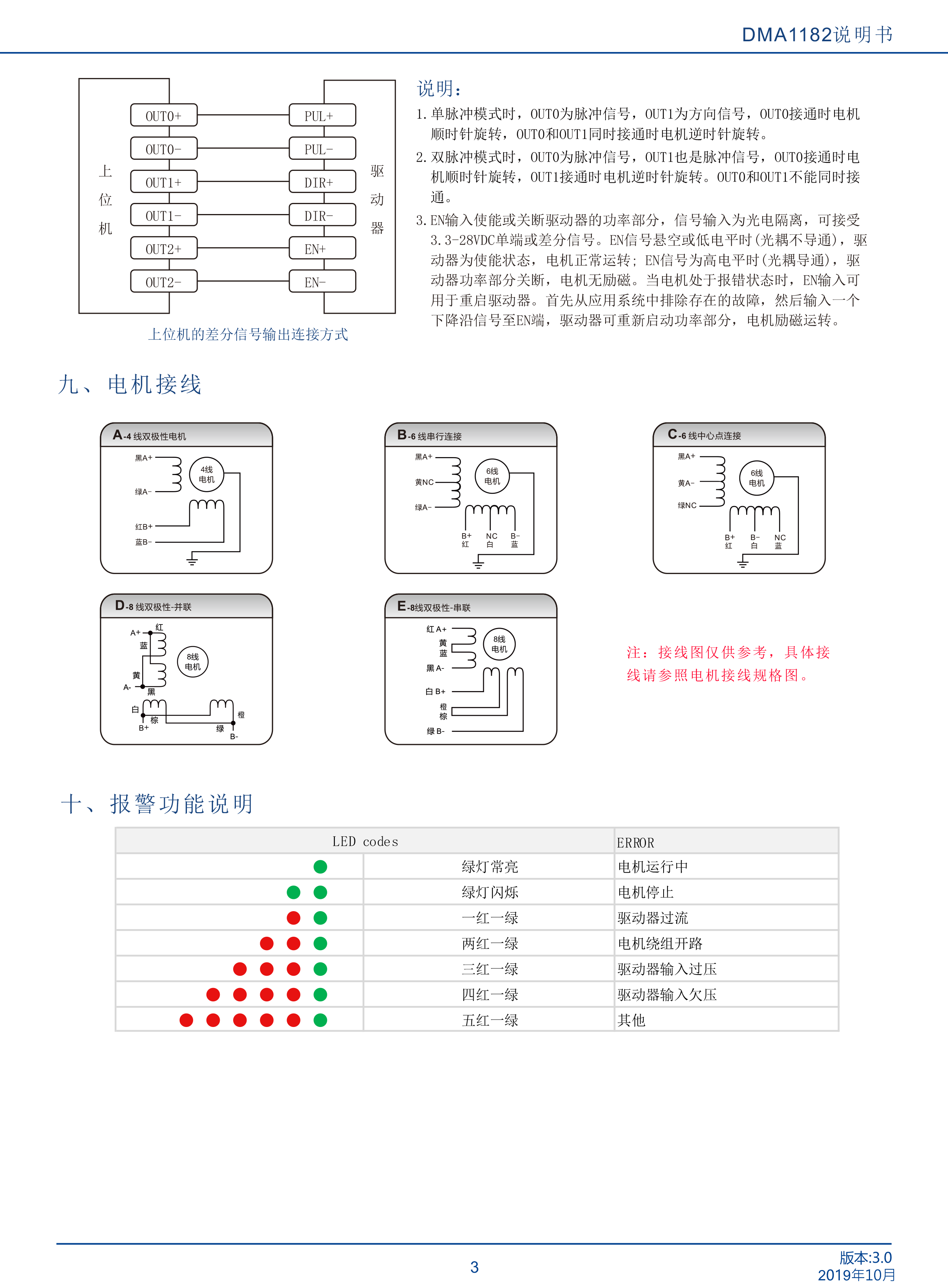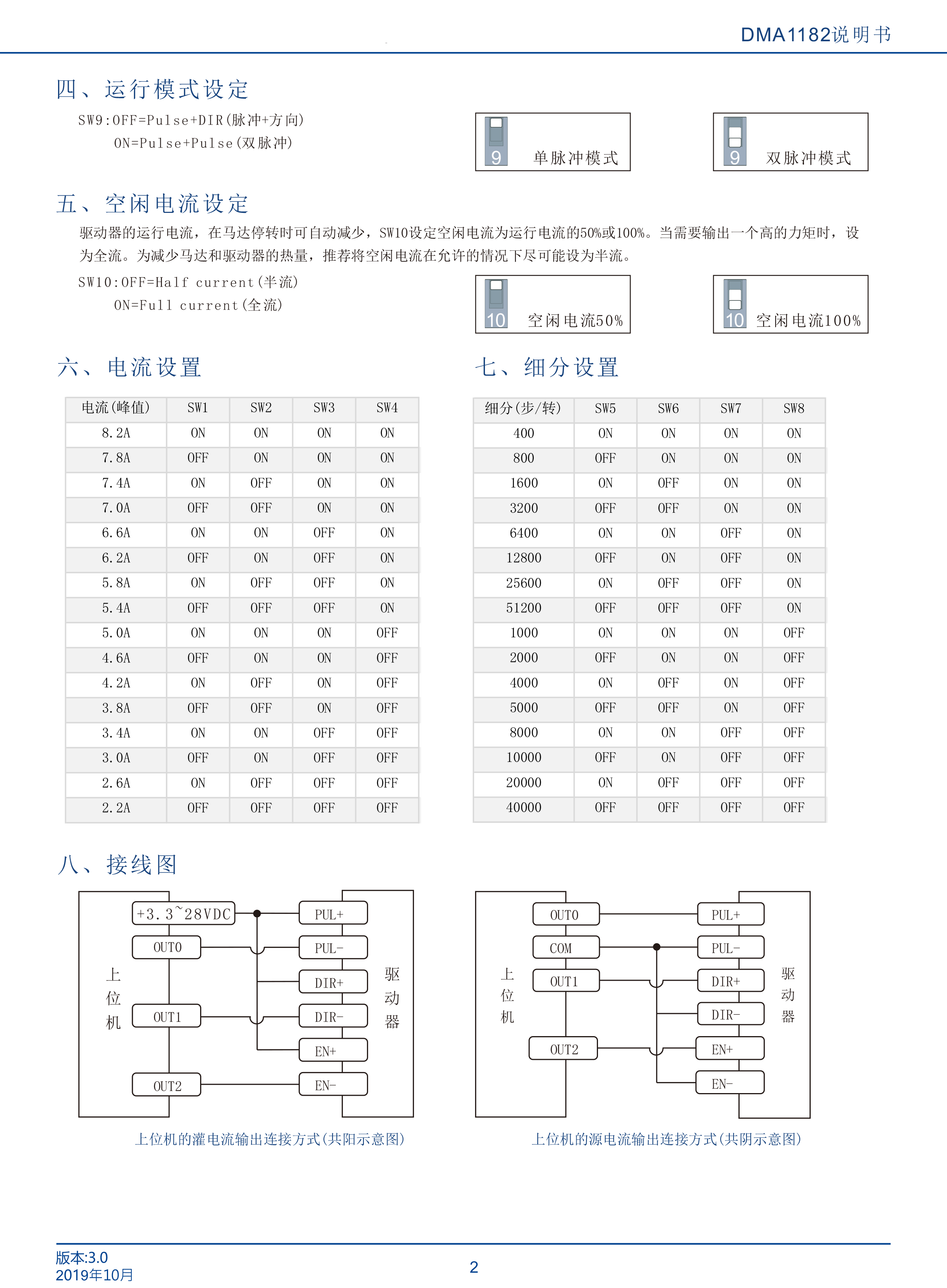 DMA1182是立成公司最新研制的基于新一代基于32位DSP技術(shù)的高性能兩相數(shù)字式步進(jìn)驅(qū)動(dòng)器,驅(qū)動(dòng)電壓AC18-110VAC,適配電流8.2A以下,外徑60 110mm的各種型號兩相混合式步進(jìn)電機(jī)。該驅(qū)動(dòng)器采樣類似伺服的控制原理,獨(dú)特的電路設(shè)計(jì),優(yōu)越的軟件算法處理,使電機(jī)即使在低細(xì)分下也能運(yùn)行平穩(wěn),幾乎沒有振動(dòng)和噪音,平滑、精確地電流控制技術(shù)大大減少了電機(jī)發(fā)熱,外置16檔等角度恒力矩細(xì)分,最高51200細(xì)分,光耦隔離差分信號輸入,抗干擾能力強(qiáng),具有過壓、欠壓、過流保護(hù)等出錯(cuò)保護(hù)功能。在點(diǎn)膠機(jī)、激光雕刻等中、低速應(yīng)用領(lǐng)域,其平穩(wěn)性、振動(dòng)、噪聲性能優(yōu)勢明顯,可大大提高設(shè)備性能。