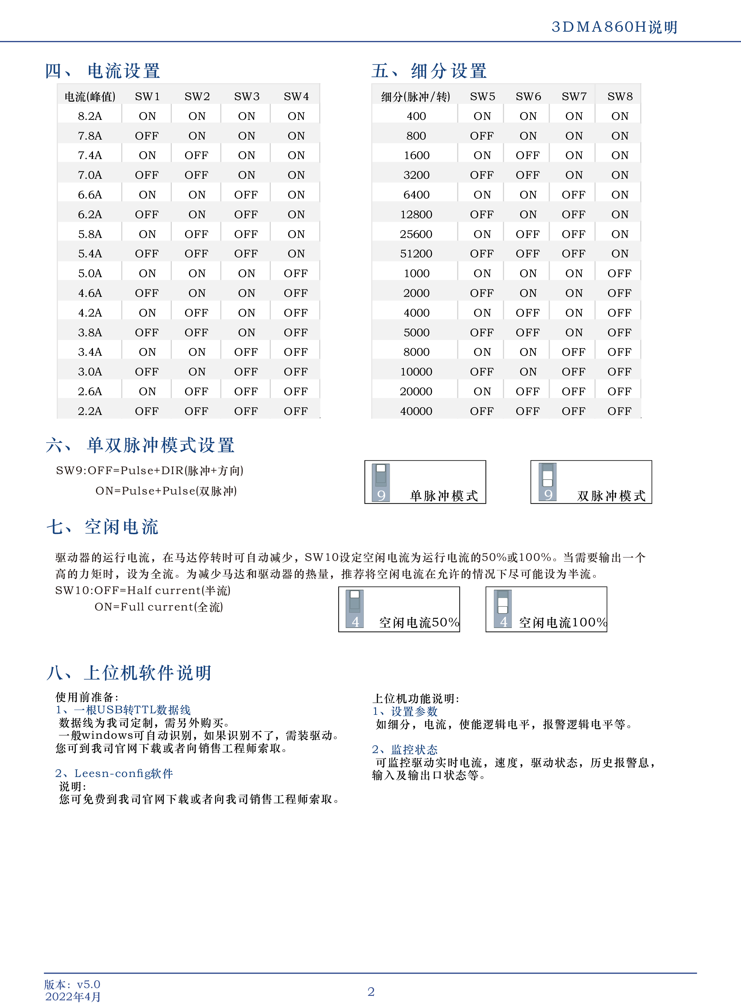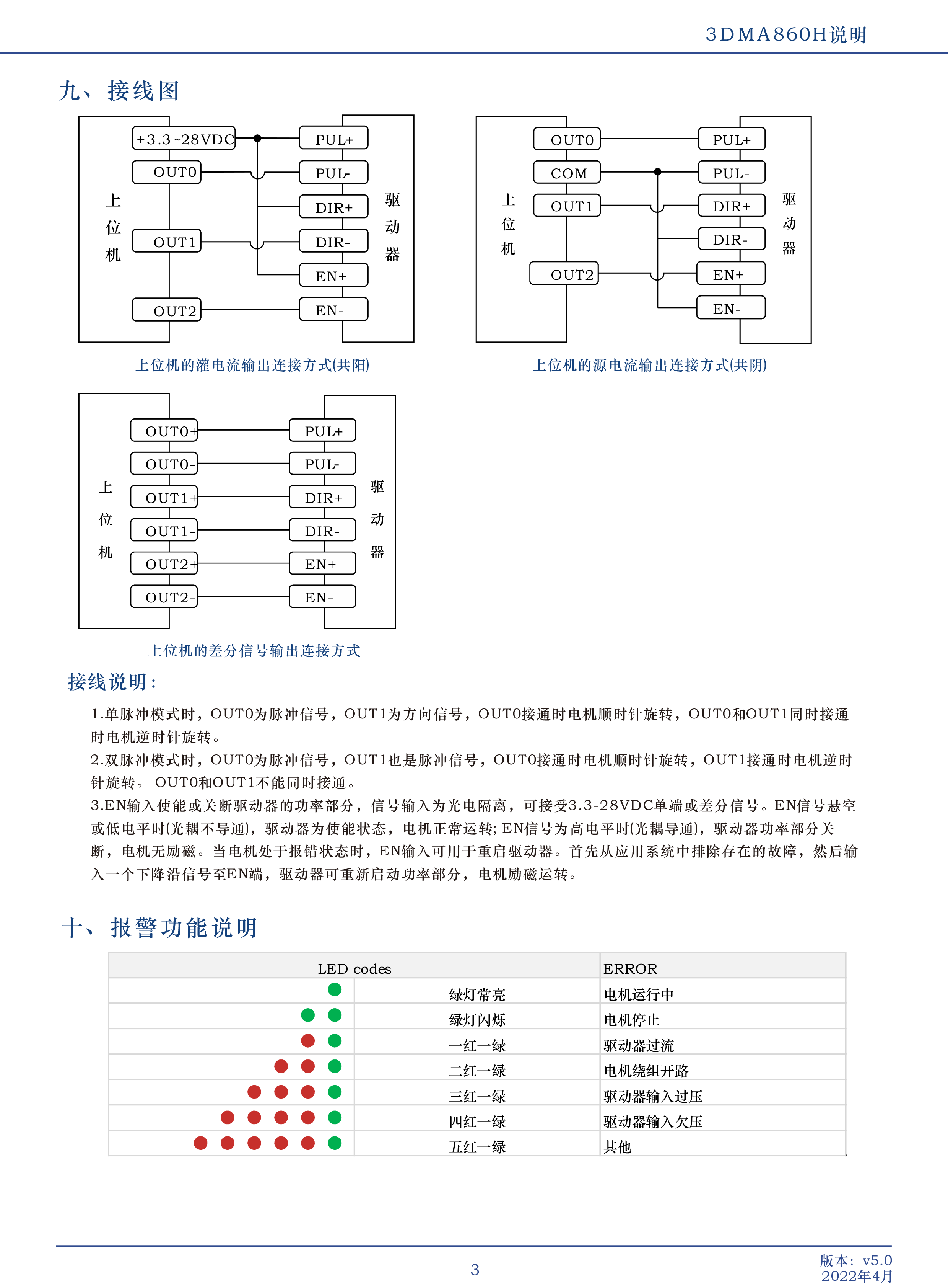 3DMA860H-1型3相開(kāi)環(huán)步進(jìn)電機(jī)驅(qū)動(dòng)器,是公司潛心研制的新一代基于32位DSP技術(shù)的高性能三相數(shù)字式步進(jìn)驅(qū)動(dòng)器,驅(qū)動(dòng)電壓AC18V80V,適配電流8.2A以下,外徑86~110的各種型號(hào)三相混合式步進(jìn)電機(jī)。